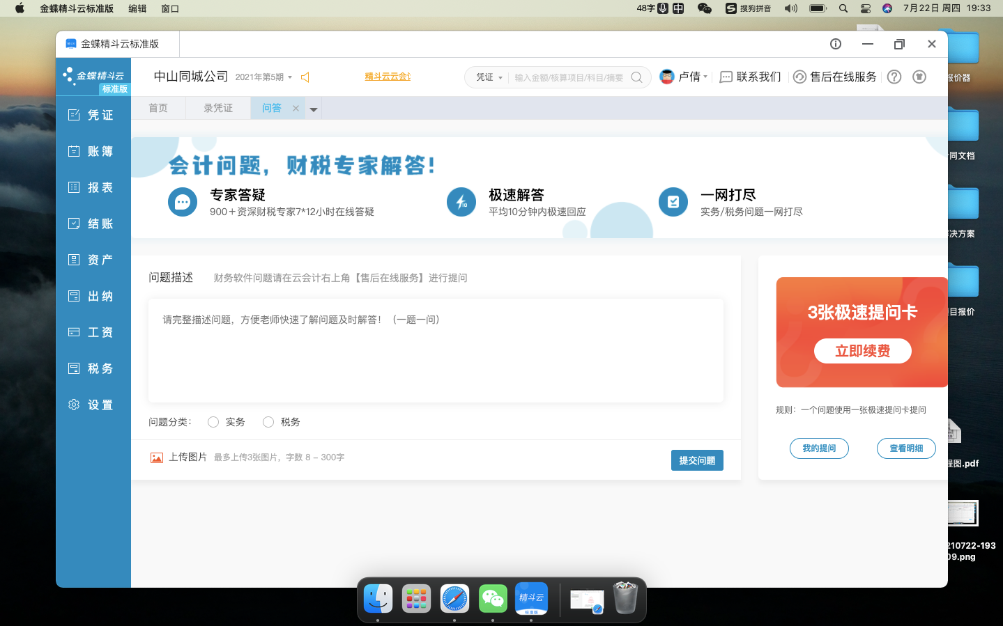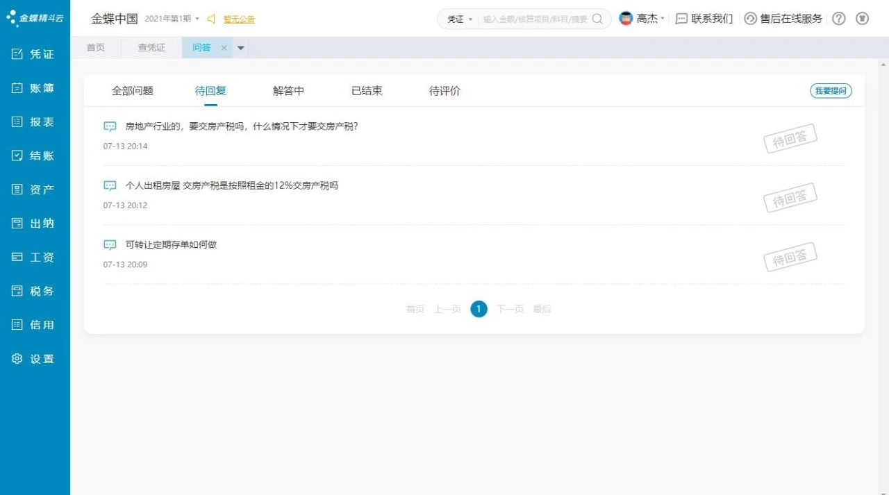金蝶精斗云的迷你版、標(biāo)準(zhǔn)版產(chǎn)品,在錄憑證、查憑證、明細(xì)賬、科目余額表、結(jié)賬等財會最常使用的產(chǎn)品功能界面上提供【會計問題,專家解答】按鈕,用戶點擊按鈕即可一鍵發(fā)起提問。系統(tǒng)默認(rèn)向新使用問答服務(wù)的賬套贈送3張問答卡。