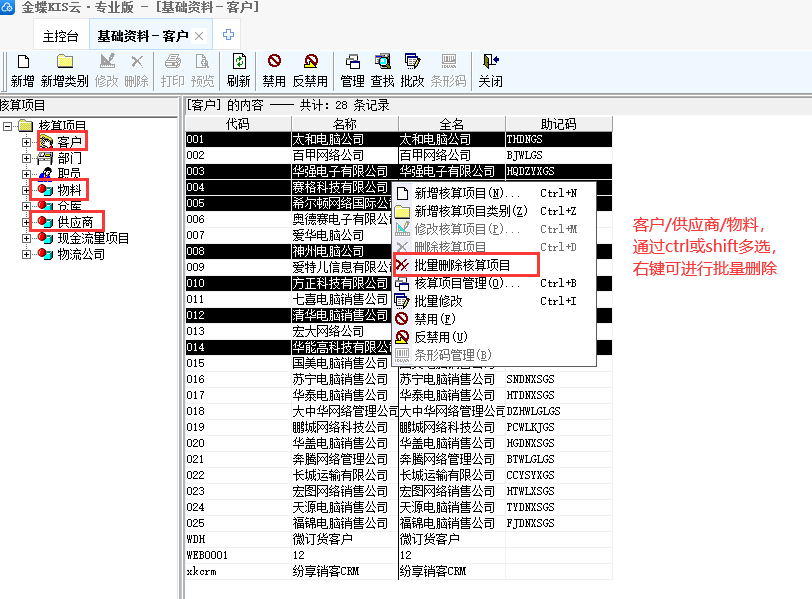 3、物料/客戶/供應(yīng)商支持批量刪除功能,提升業(yè)務(wù)處理效率