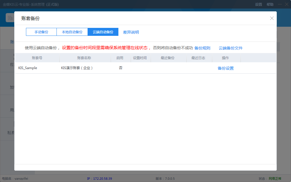 4、系統(tǒng)管理增加賬套自動(dòng)云備份功能,保障賬套數(shù)據(jù)安全