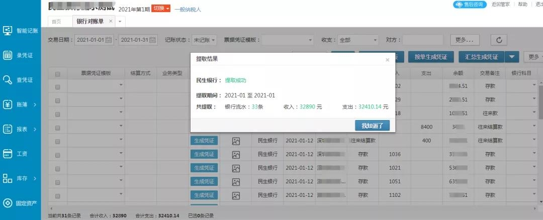 現(xiàn)在自動(dòng)獲取銀行流水后,無(wú)需一筆一筆錄入憑證,系統(tǒng)可以自動(dòng)生成憑證、報(bào)表,解放雙手,放飛自我,更智能、更高效。