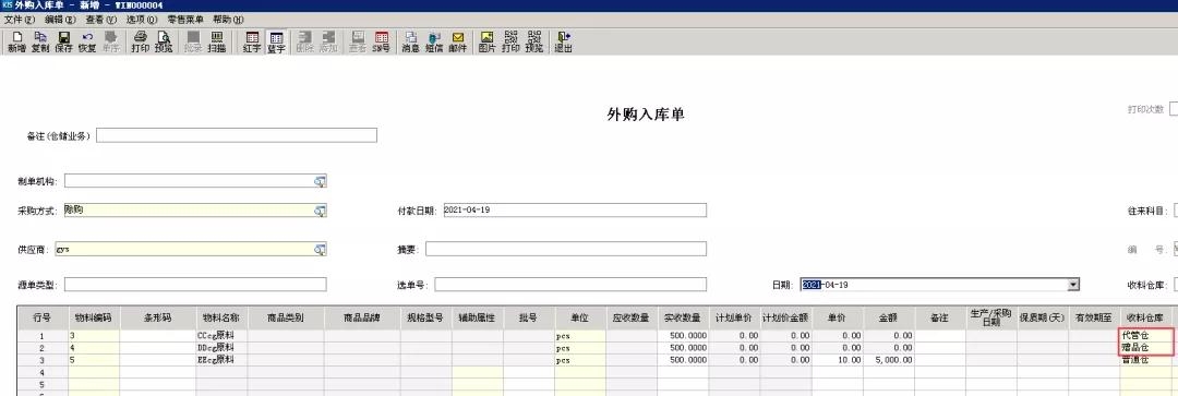設(shè)置好倉(cāng)庫(kù)屬性之后,用戶(hù)便可根據(jù)單據(jù)分錄的倉(cāng)庫(kù)屬性,將廢品、贈(zèng)品、客供料等物料與正常物料一同入庫(kù),提升入庫(kù)效率,并且,入庫(kù)單據(jù)同時(shí)顯示實(shí)倉(cāng)、虛倉(cāng)倉(cāng)庫(kù),方便用戶(hù)集中處理所有入庫(kù)業(yè)務(wù)。