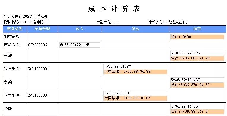 ▲ 成本計(jì)算表