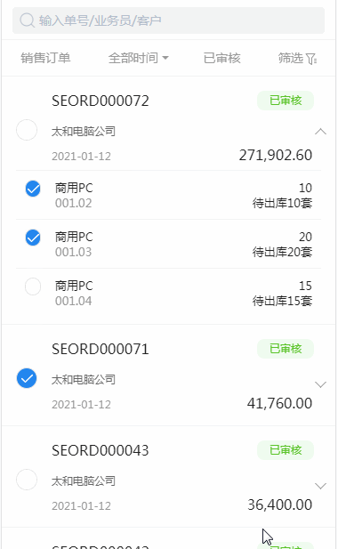 這不僅能更好地反應(yīng)真正的業(yè)務(wù)狀況,還能幫助企業(yè)實現(xiàn)銷售訂單的批量出庫,提高出庫效率。(采購入庫單同理)