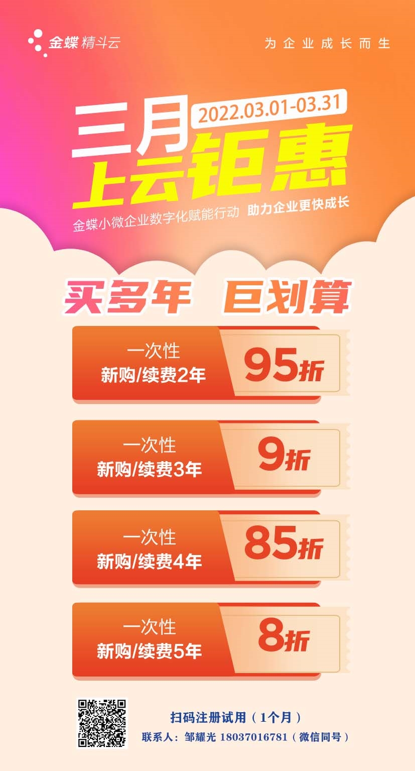 金蝶-云會(huì)計(jì)2022.3月開(kāi)通購(gòu)買(mǎi) 優(yōu)惠政策如下: