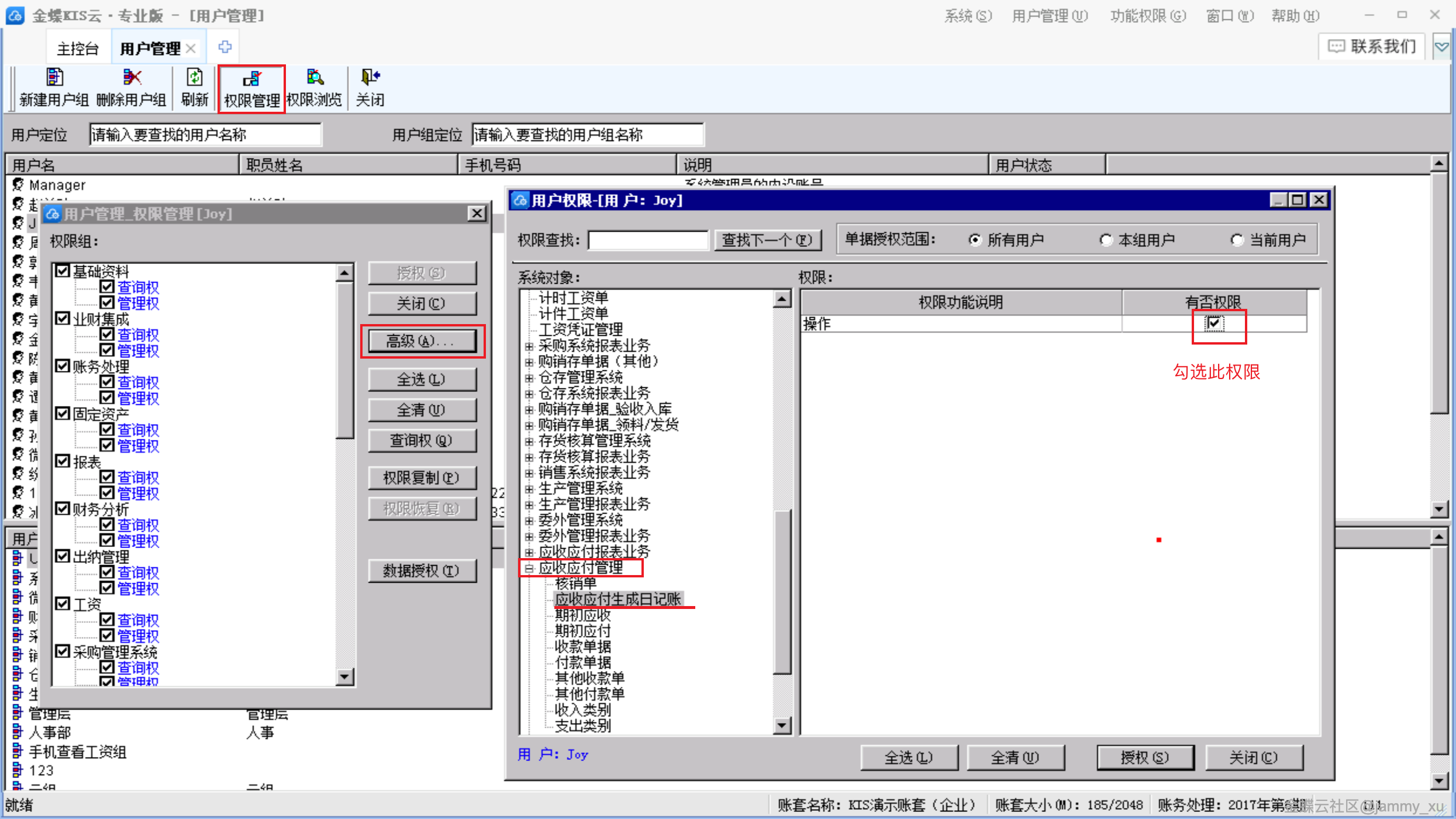 ②權(quán)限授予:需要授予操作員相關(guān)的權(quán)限。權(quán)限入口:應(yīng)收應(yīng)付管理-應(yīng)收應(yīng)付生成日記賬-操作權(quán)
