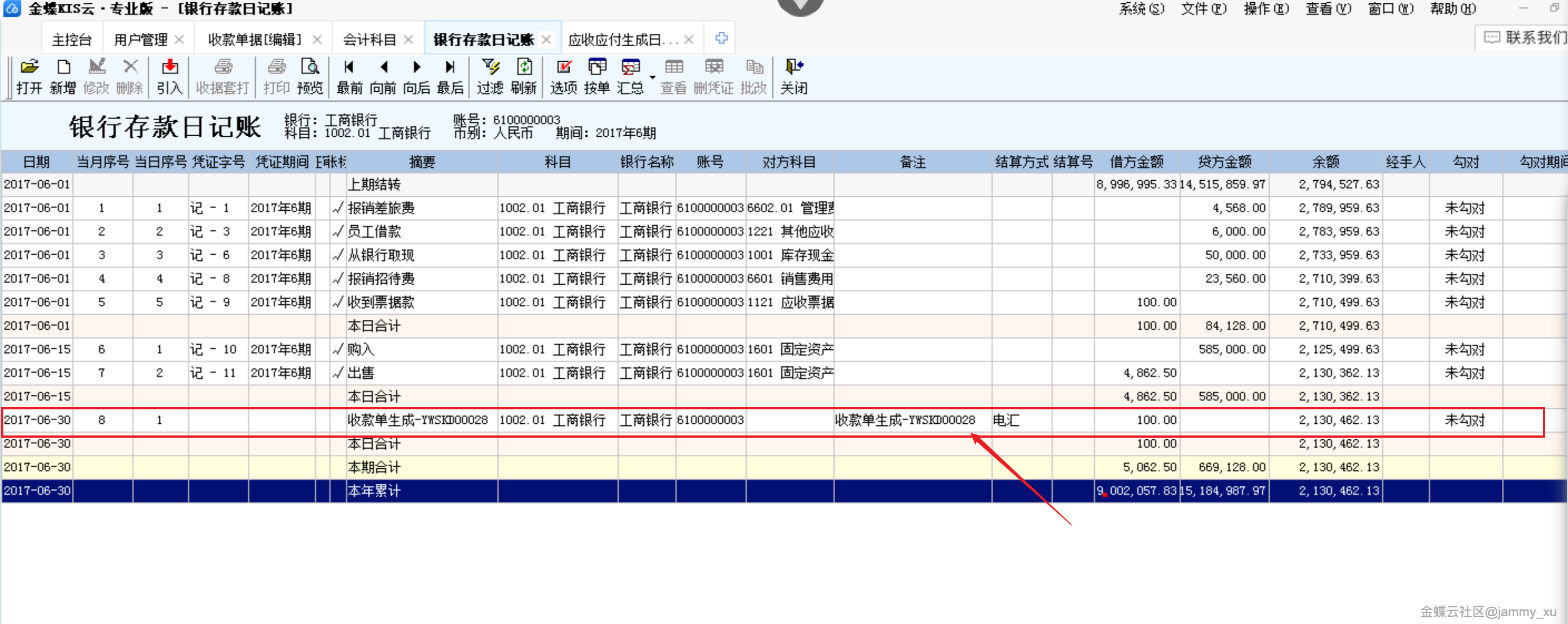 第③步:此時,您即可到出納管理模塊--現(xiàn)金/銀行日記賬中,打開對應(yīng)的科目,查詢到由該收款單生成的日記賬分錄了。