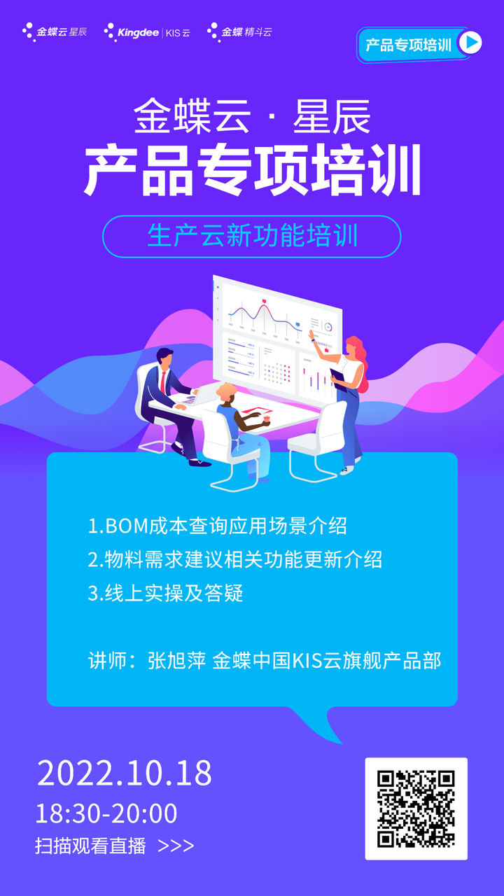 本期課程:生產(chǎn)云新功能培訓(xùn)——BOM成本查詢、物料需求建議選任務(wù)單計(jì)算等新功能場(chǎng)景介紹及演示