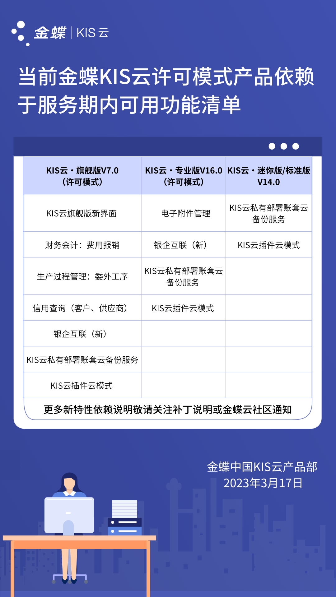 洛陽金蝶軟件-2023.3.17關于 金蝶KIS 云部分新功能依賴于服務期的通知