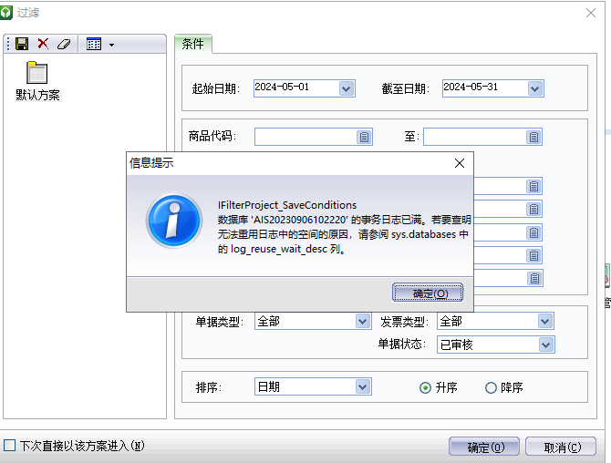 金蝶KIS專業(yè)版、KIS商貿(mào)版 如果多用戶站點(diǎn) 局域網(wǎng)或者 通過(guò)KIS云異地訪問(wèn)金蝶服務(wù)器主機(jī),外加 服務(wù)器 上 賬套數(shù)據(jù)年限長(zhǎng) 數(shù)據(jù)量大,日積月累訪問(wèn)寫(xiě)入 ,數(shù)據(jù)庫(kù)log格式日志文件 會(huì)膨脹變大,且無(wú)法備份數(shù)據(jù),提示:數(shù)據(jù)庫(kù)事務(wù)日志已滿,若要查明無(wú)法重用日志中的空間原因,請(qǐng)參閱 sysdatabases 中的log_reuse_wait_desc 列。